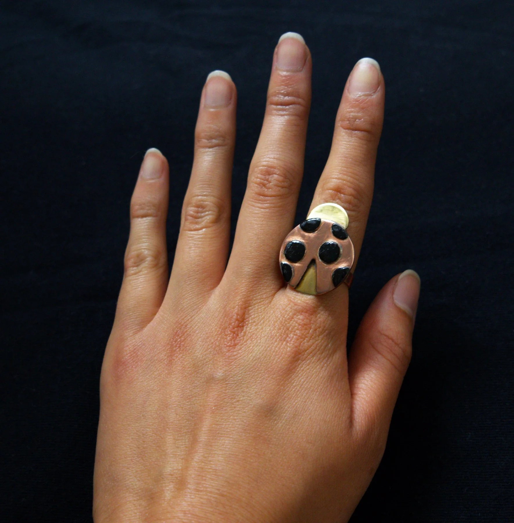 copper, brass, black nail polish